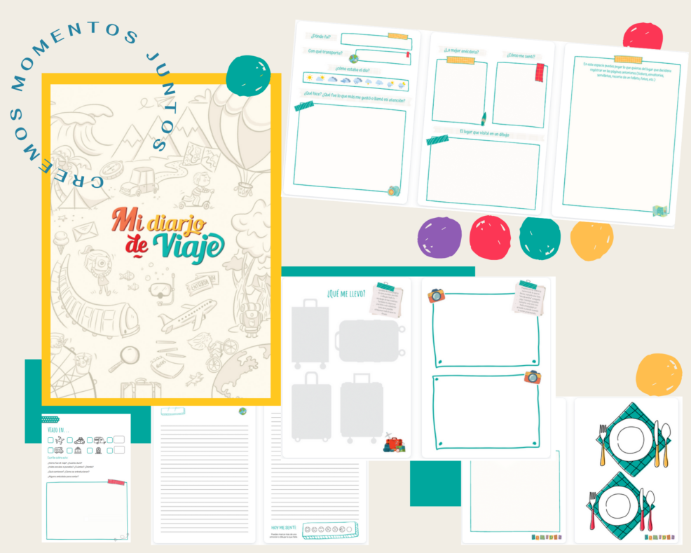 La idea es documentar y registrar el viaje de una manera especial, donde cada elemento que escriban, dibujen, peguen, inventen, etc. sea importante para su familia.